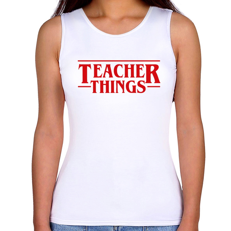 A Regata Feminina Teacher Things é confeccionada em tecido 100% Poliéster com gola redonda viés, costura simples e modelagem com caimento acinturado. A estampa do tema "Cursos e Profissões" é feita através do processo Sublimação. Produto ideal para quem busca fidelidade da estampa e ótimo custo-benefício, a estampa não desbota nem quebra.