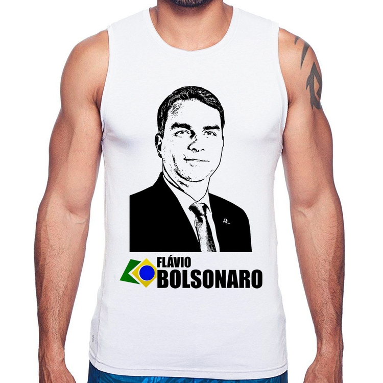 A Regata Flávio Bolsonaro 2026 é confeccionada em tecido 100% Poliéster com gola redonda viés, costura simples e modelagem com caimento reto. A estampa do tema "Política" é feita através do processo Sublimação. Produto ideal para quem busca fidelidade da estampa e ótimo custo-benefício, a estampa não desbota nem quebra.