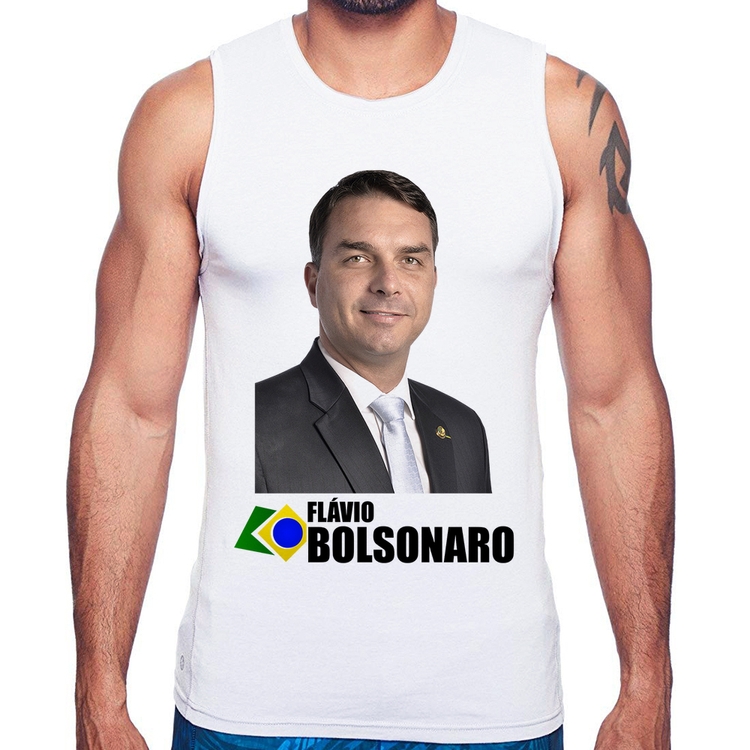 A Regata Flávio Bolsonaro é confeccionada em tecido 100% Poliéster com gola redonda viés, costura simples e modelagem com caimento reto. A estampa do tema "Política" é feita através do processo Sublimação. Produto ideal para quem busca fidelidade da estampa e ótimo custo-benefício, a estampa não desbota nem quebra.
