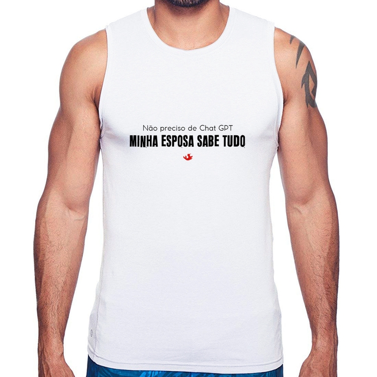 A Regata Não preciso de Chat GPT, Minha esposa sabe tudo é confeccionada em tecido 100% Poliéster com gola redonda viés, costura simples e modelagem com caimento reto. A estampa do tema "Frases e Memes" é feita através do processo Sublimação. Produto ideal para quem busca fidelidade da estampa e ótimo custo-benefício, a estampa não desbota nem quebra.