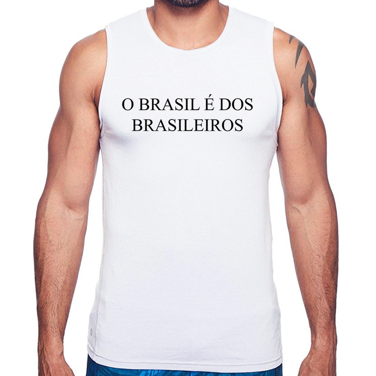 A Regata O Brasil é dos brasileiros é confeccionada em tecido 100% Poliéster com gola redonda viés, costura simples e modelagem com caimento reto. A estampa do tema "Política" é feita através do processo Sublimação. Produto ideal para quem busca fidelidade da estampa e ótimo custo-benefício, a estampa não desbota nem quebra.