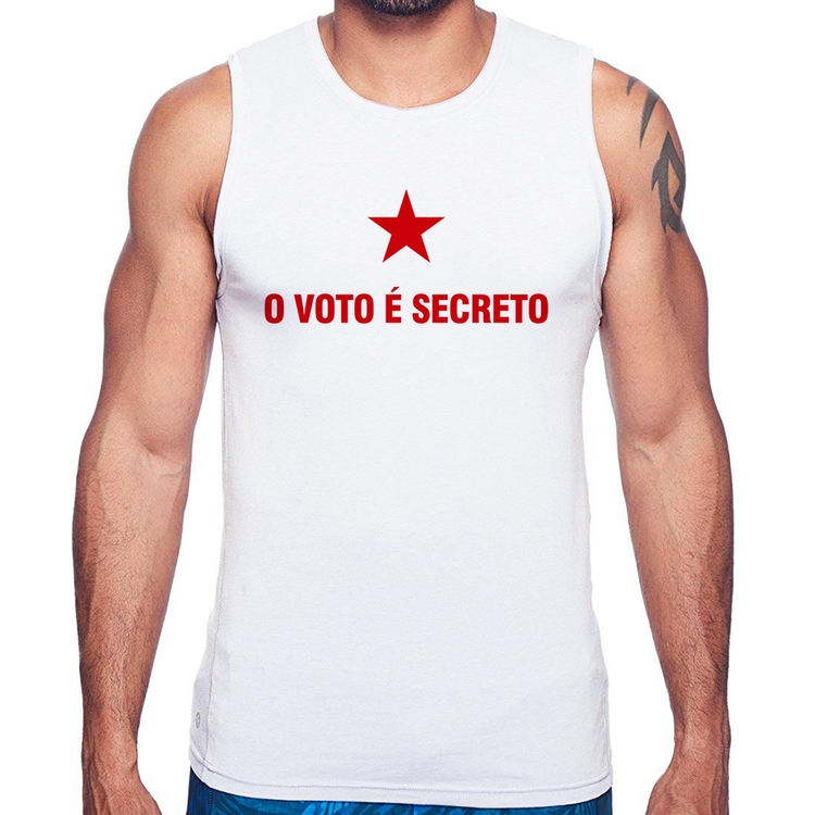 A Regata O voto é secreto é confeccionada em tecido 100% Poliéster com gola redonda viés, costura simples e modelagem com caimento reto. A estampa do tema "Política" é feita através do processo Sublimação. Produto ideal para quem busca fidelidade da estampa e ótimo custo-benefício, a estampa não desbota nem quebra.