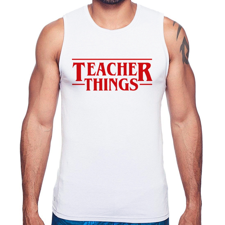 A Regata Teacher Things é confeccionada em tecido 100% Poliéster com gola redonda viés, costura simples e modelagem com caimento reto. A estampa do tema "Cursos e Profissões" é feita através do processo Sublimação. Produto ideal para quem busca fidelidade da estampa e ótimo custo-benefício, a estampa não desbota nem quebra.