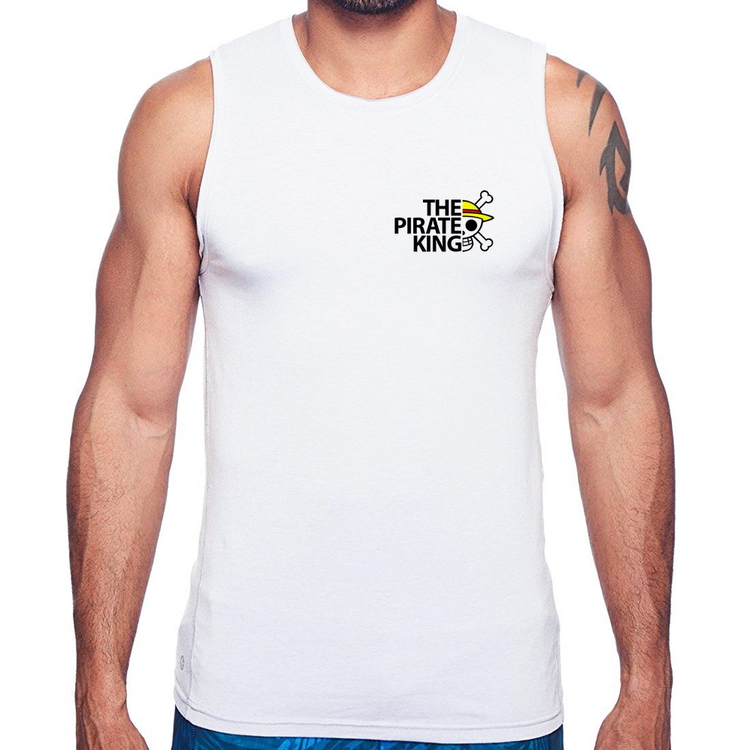 A Regata The Pirate King é confeccionada em tecido 100% Poliéster com gola redonda viés, costura simples e modelagem com caimento reto. A estampa do tema "Animes e Desenhos" é feita através do processo Sublimação. Produto ideal para quem busca fidelidade da estampa e ótimo custo-benefício, a estampa não desbota nem quebra.